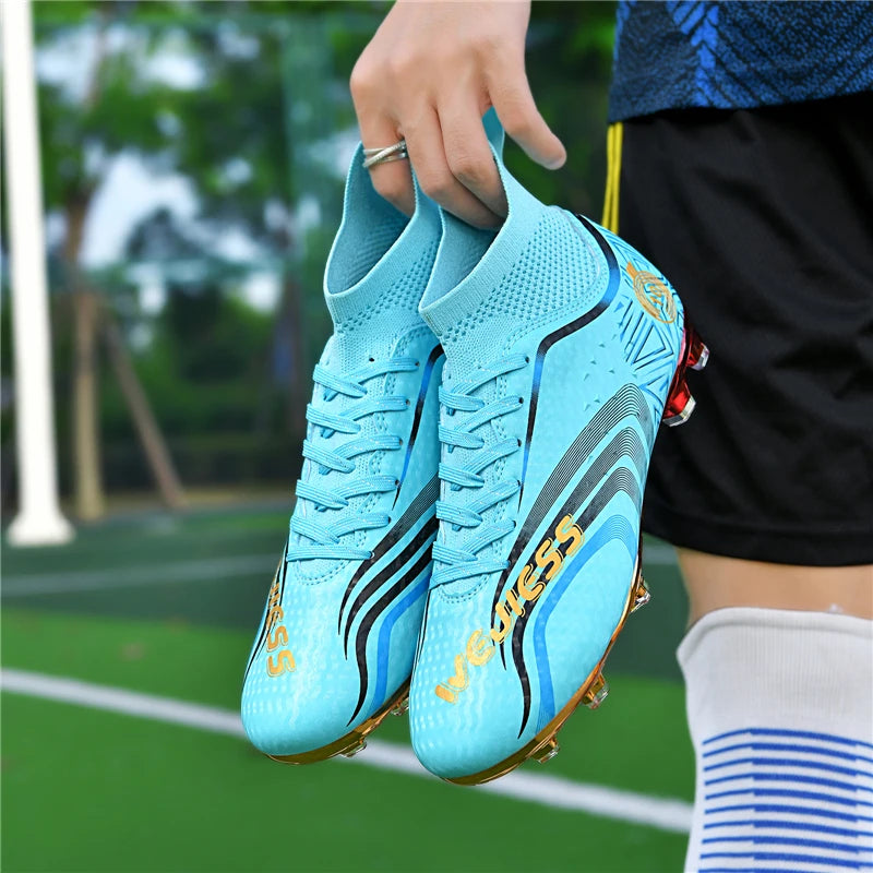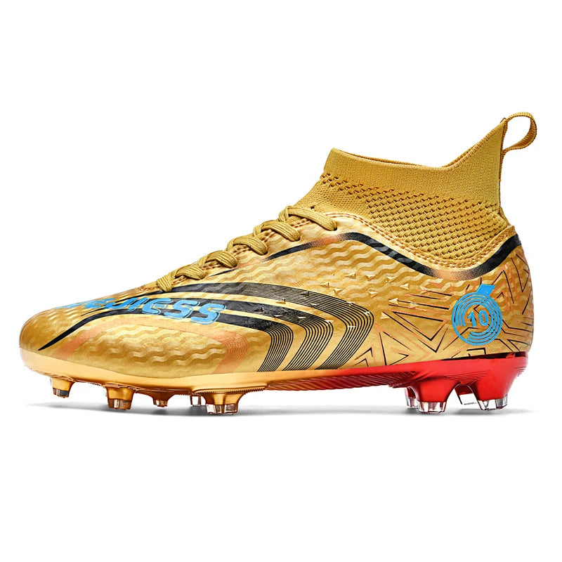 With the Ultralight Youth Soccer Cleats/Cristiano Ronaldo golden bottom Shoes, your child will have superior performance on the field. These lightweight cleats ensure maximum speed and agility, while the golden bottom adds a touch of style. Perfect for young soccer players looking to elevate their game!