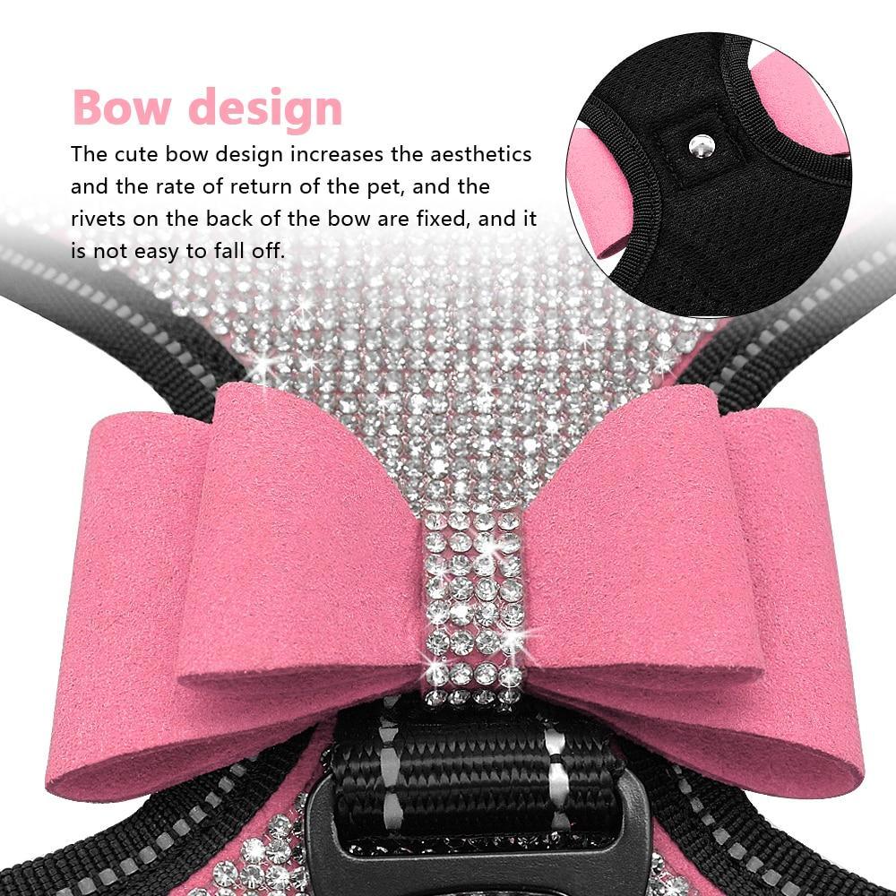 Rhinestone Blinged Dog Vest Harness/Nylon for Small Medium Dogs Bowknot Reflective Pug Yorkies Frenchie Bichon Friese Bling Diamonds